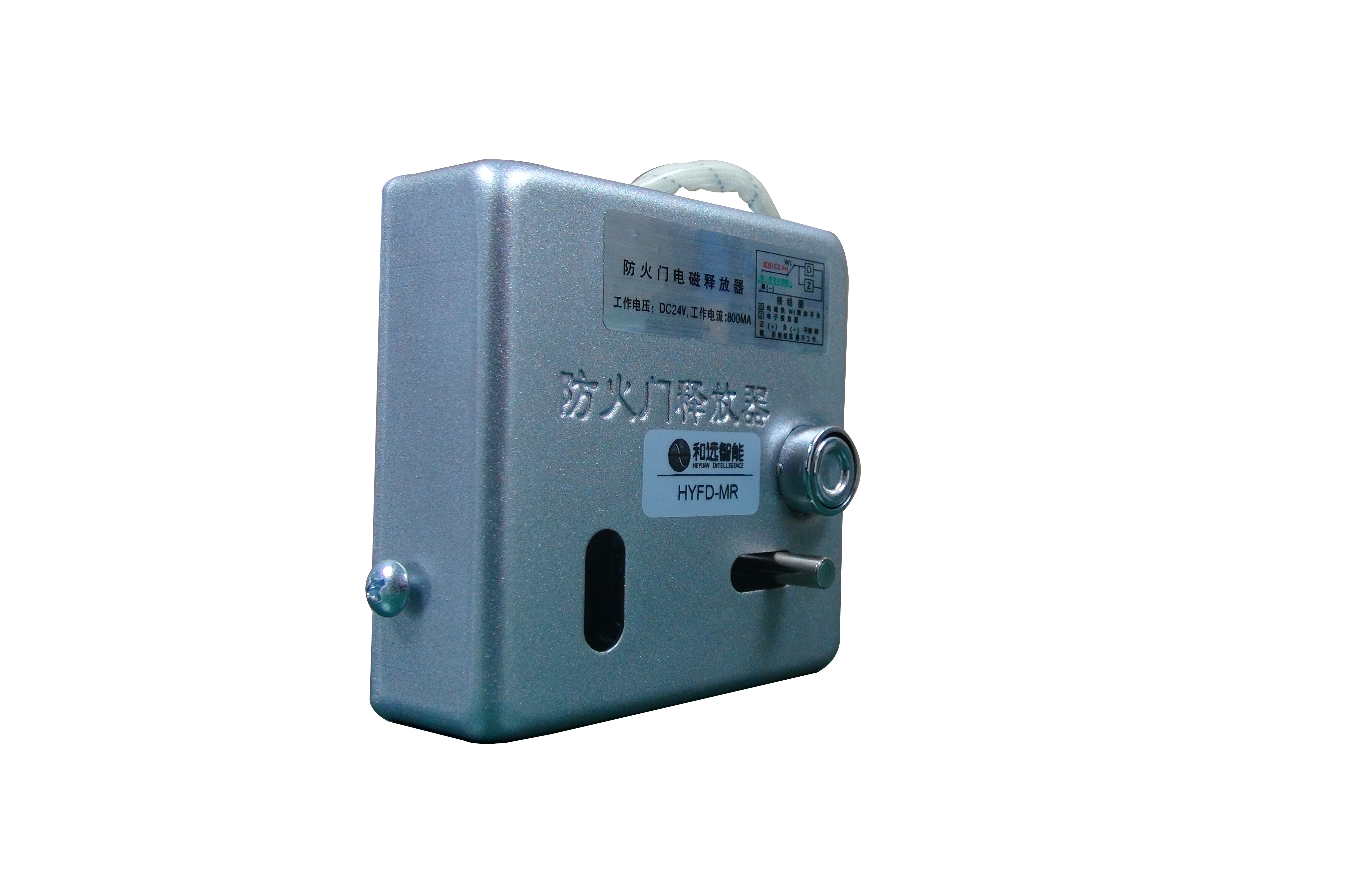 簡介: 電磁釋放器HYFD-MR,平時鏈條被釋放器槽內(nèi)的傳動軸鎖住,門體保持常開狀態(tài);當火災發(fā)生時,防火門監(jiān)控器DC24V釋放電源打開電磁釋放器,鏈條脫開,防火門自動關(guān)閉。